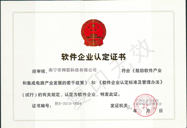 《軟件企業(yè)認定證書》證書編號:桂R-2010-0024《軟件產品登記證書》證書編號:桂DGY-2010-0058